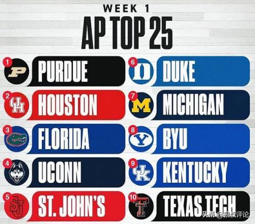 此前,普度大学队史首次在美联社季前25强榜单中排名第一位,球队赢得了61张第一选票中的35张,这使得马特-佩因特(Matt Painter)的球队领先于上赛季NCAA冠军赛的两支球队,亚军休斯顿大学排名第二,卫冕冠军佛罗里达大学排名第三。